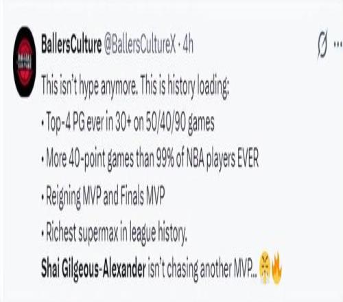 美媒BC寫道:目前是第四位場均30+且50/40/90的球員;擁有比現(xiàn)役超過99%球員更多的40+;上賽季MVP+FMVP;歷史第一頂薪球員,他正在追逐連莊MVP。