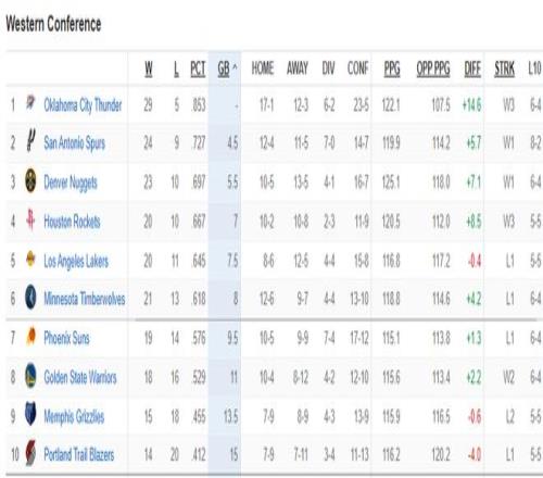 一波三連勝后雷霆29勝5負,勝率達到85.3%,雖然沖擊73勝難度很大了,但沖擊70勝還是有很大希望的,勝率85.3%就是69.8勝了。
