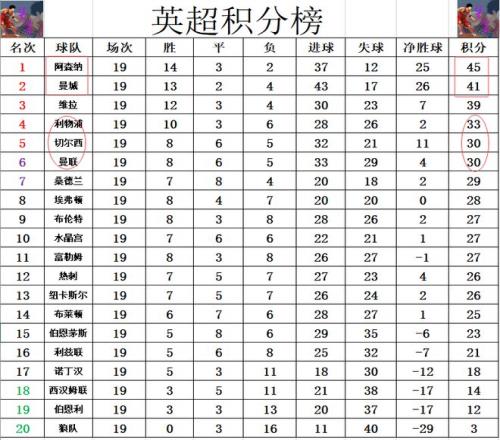 英超最新積分戰(zhàn)報(bào)半程冠軍阿森納笑了!曼城連勝終止少榜首4分