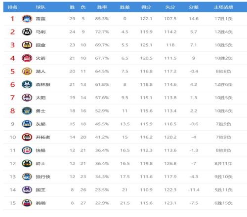 今日比賽后快船、爵士、獨(dú)行俠排名互換,其他西部球隊(duì)排名不變。