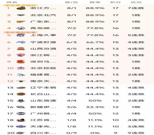 CBA常規(guī)賽第9輪結(jié)束了所有比賽,最新積分榜如下!